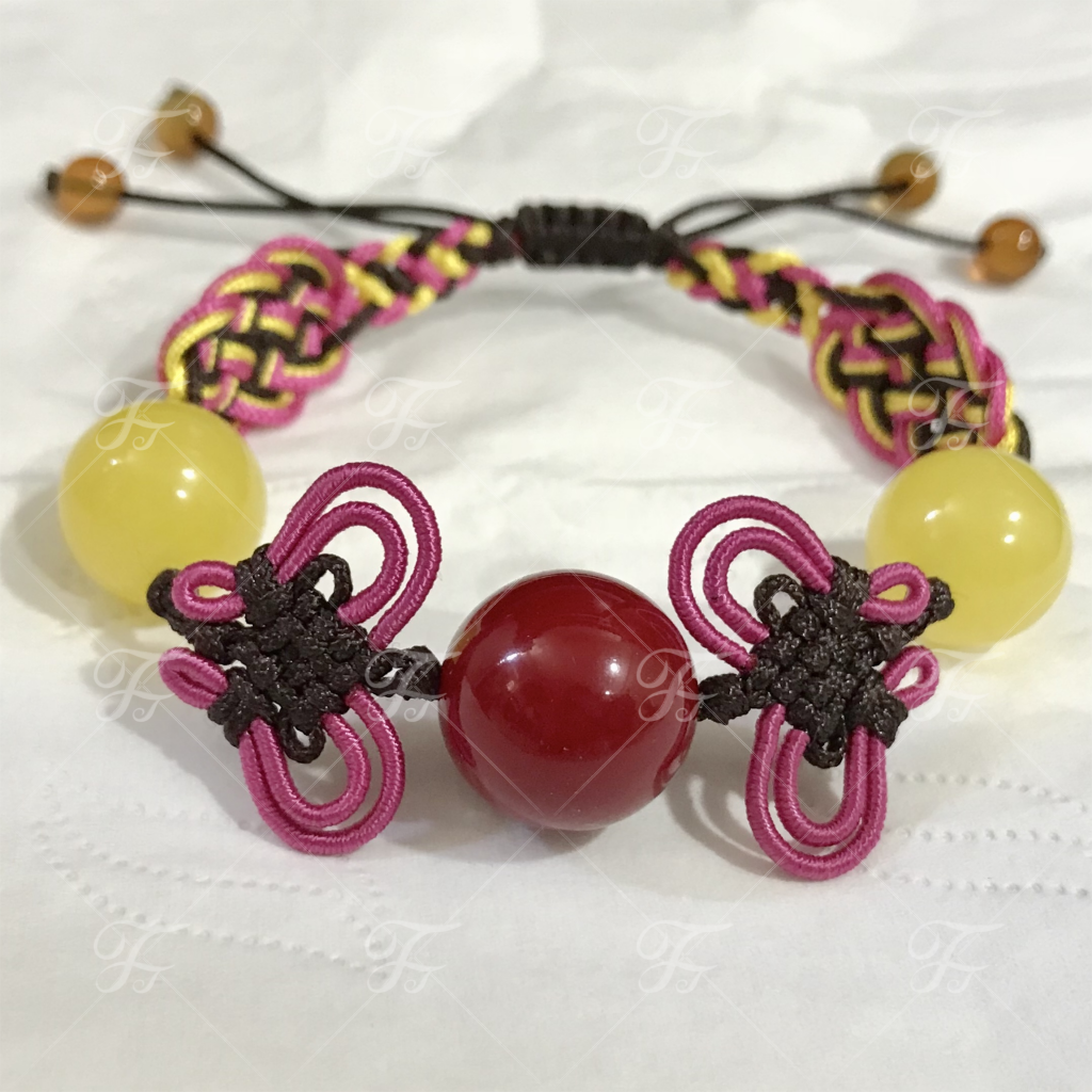 全人手編織中國結手鍊 可自選天然蜜蠟琥珀或其他飾品及線材顏色 為您度身定做 #T03000002